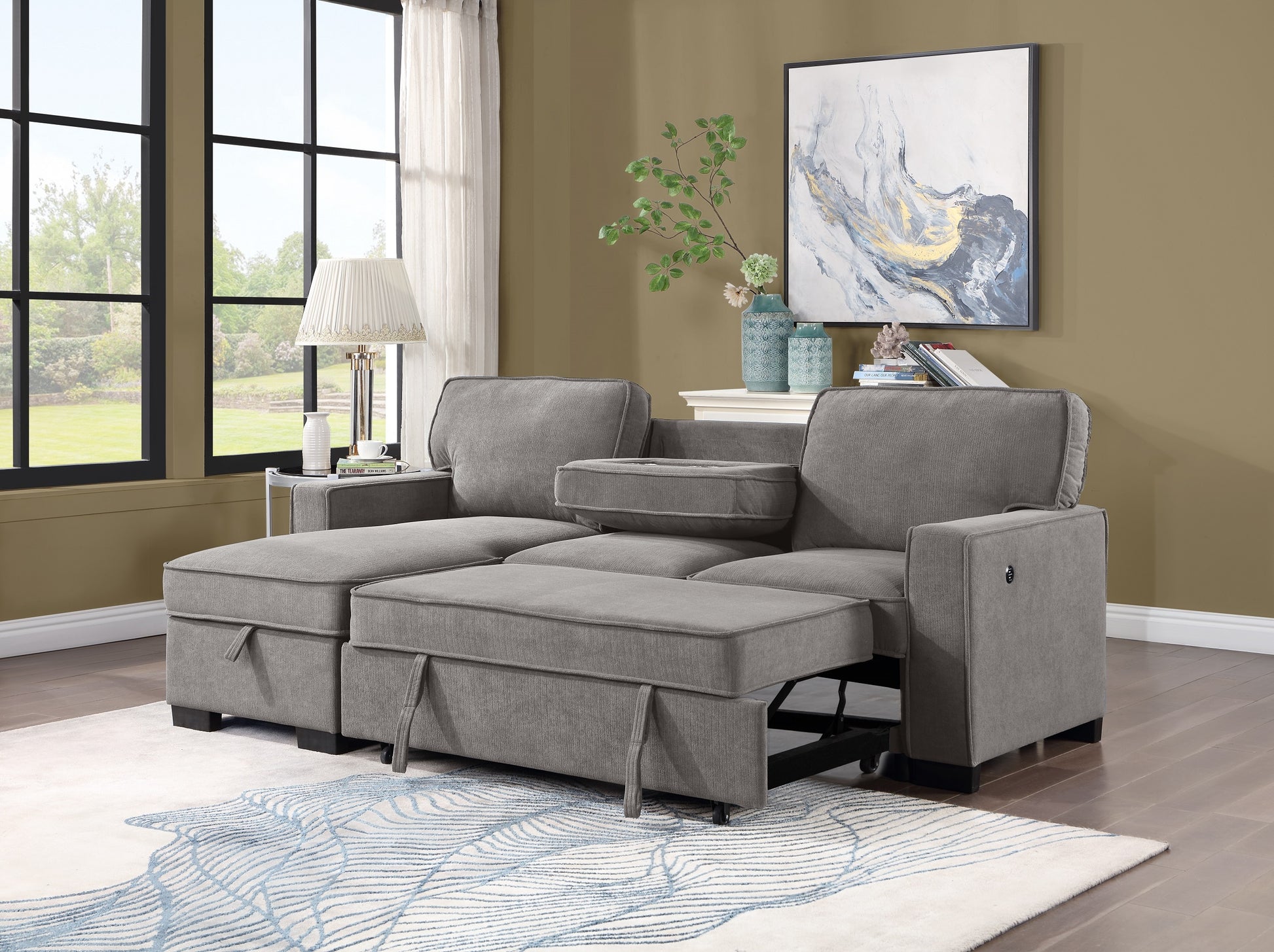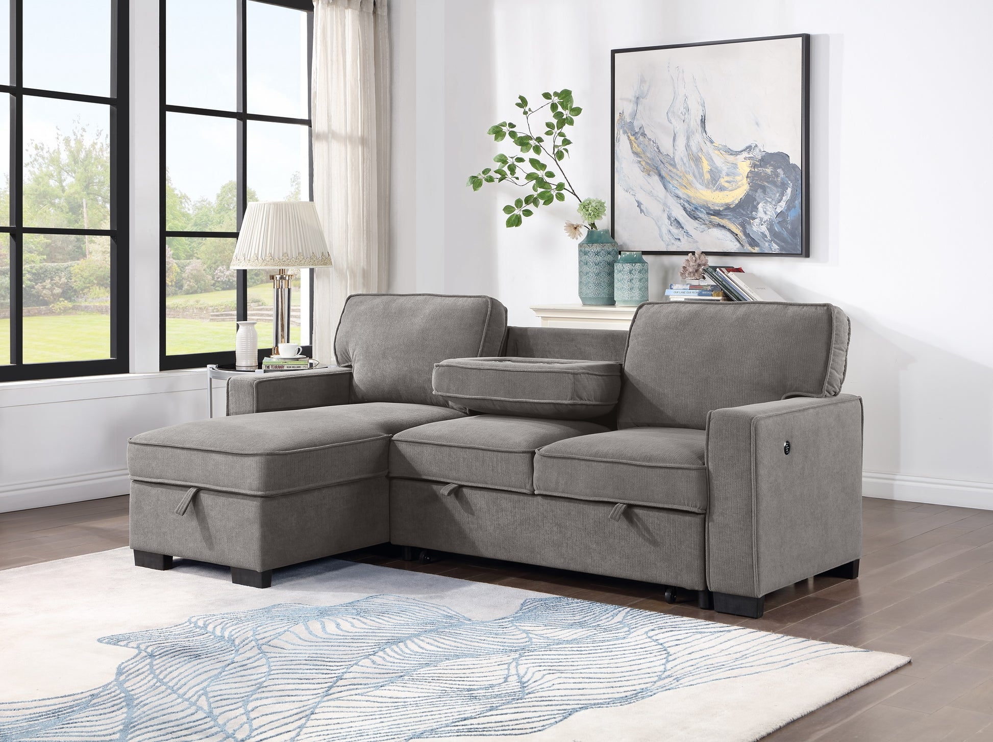 GRAY SLEEPER SECTIONAL WITH STORAGE & CUPHOLDER