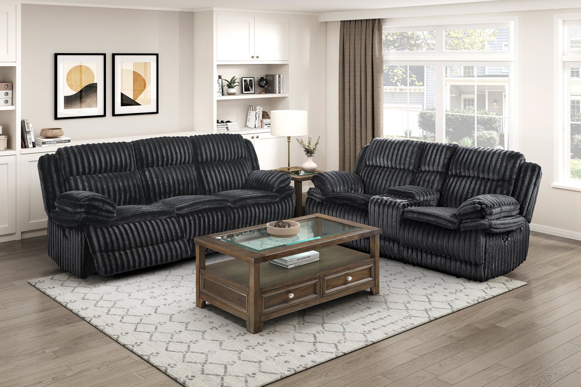GOODLAND COLLECTION RECLINING 2 PC SOFA LOVESEAT DARK BLACK