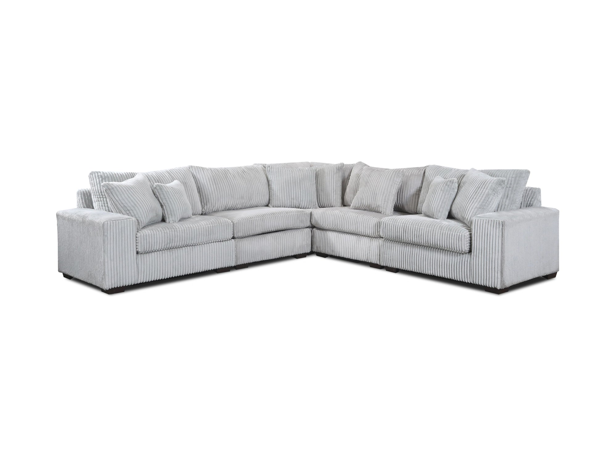Get cozy on the LIBBY LIGHT GRAY 5PC SECTIONAL. This plush corduroy sectional is as comfortable as it is stylish. Super soft to the touch, it's perfect for lounging and relaxing with friends and family. Upgrade your living room and add a touch of luxury with this must-have piece!