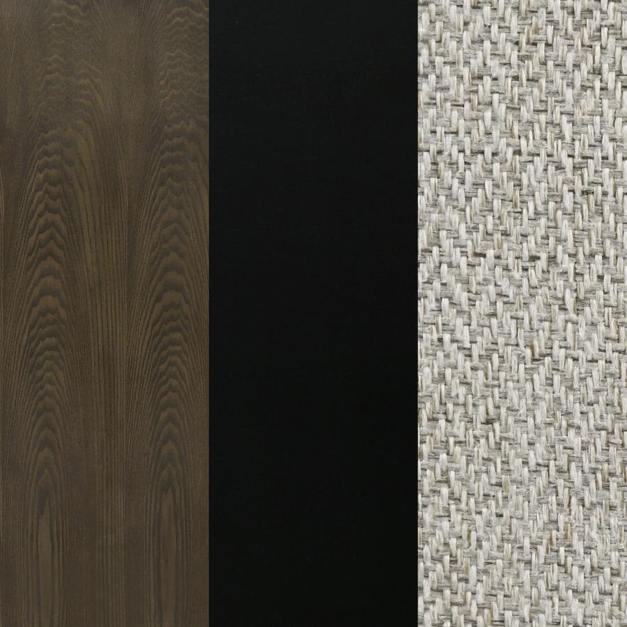 - Black dining chairs with beige upholstery and cross-hatch design for a stylish finish