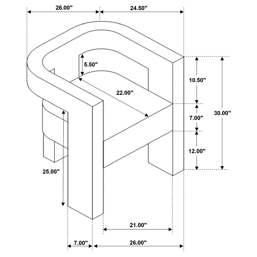 - Fully upholstered in soft bouclé fabric, creating a unified and luxurious design