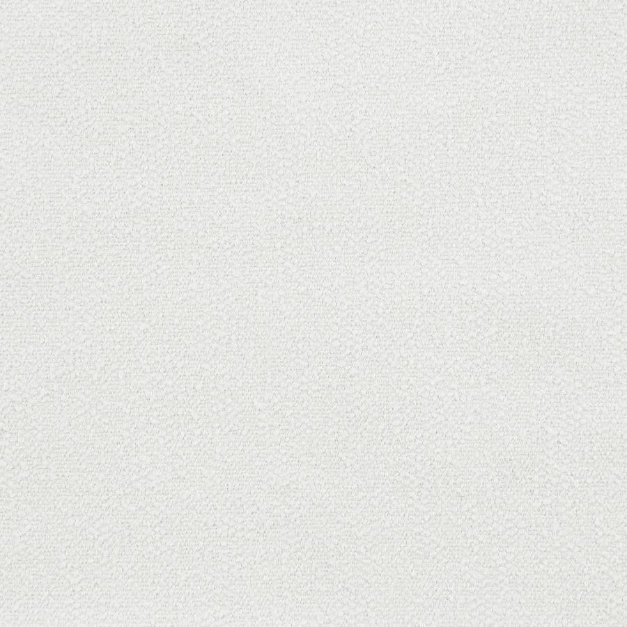 - Upholstered in soft, ivory boucle performance fabric for contemporary appeal and easy cleanup.