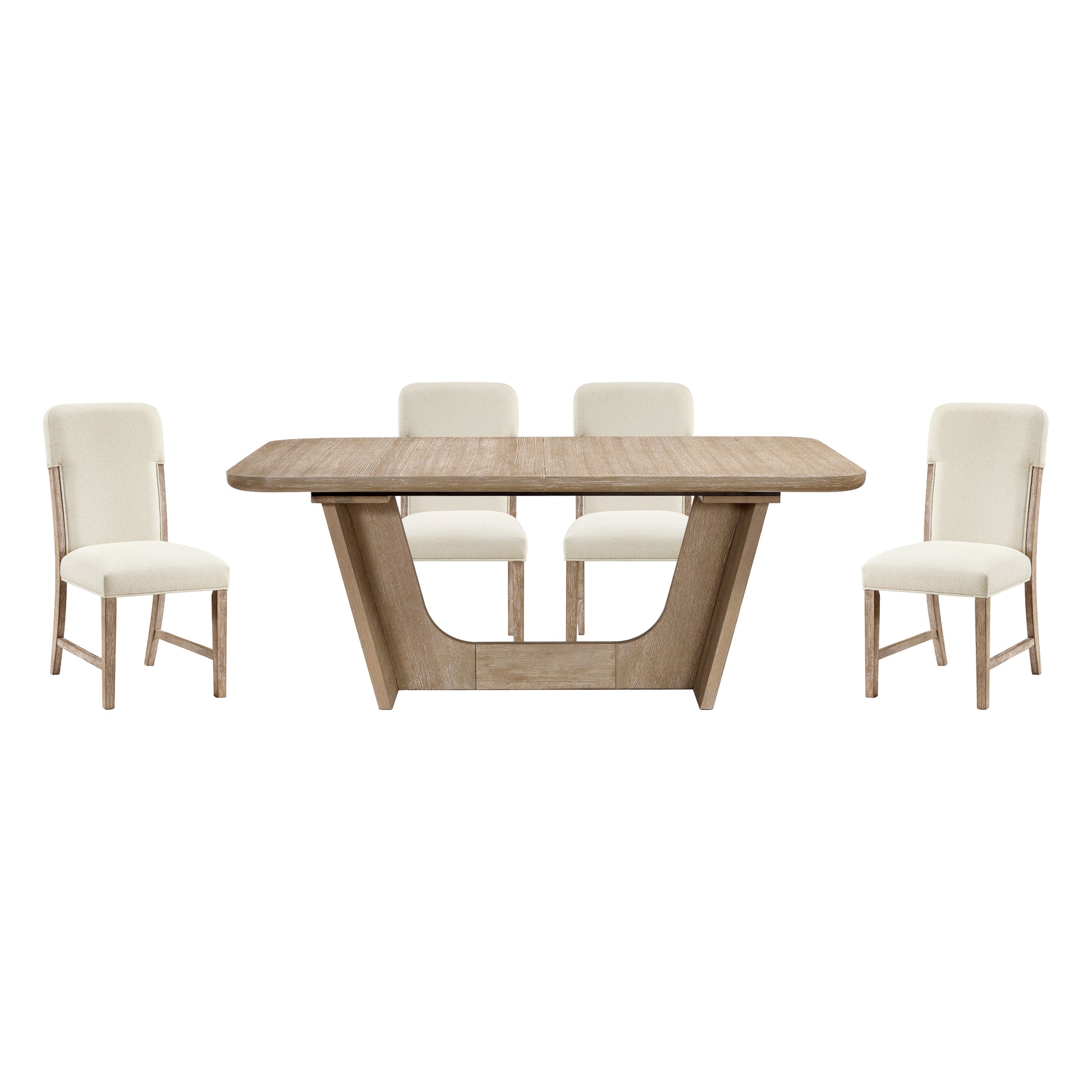Elevate your dining experience with our versatile dining collection, crafted from a durable blend of oak veneer, wood, and engineered wood with a beautiful natural finish. The extendable dining table effortlessly expands to comfortably accommodate up to 8 guests, making it perfect for both everyday meals and larger gatherings. Complement your table with our stylish and comfortable dining side chairs, featuring sturdy wood frames and plush chenille fabric upholstery for exceptional comfort. Enhance your home's organization with the versatile buffet server, offering two spacious cabinets with adjustable shelves. This collection seamlessly blends modern, transitional, and rustic farmhouse styles, creating a timeless and functional focal point for your dining room or living space.