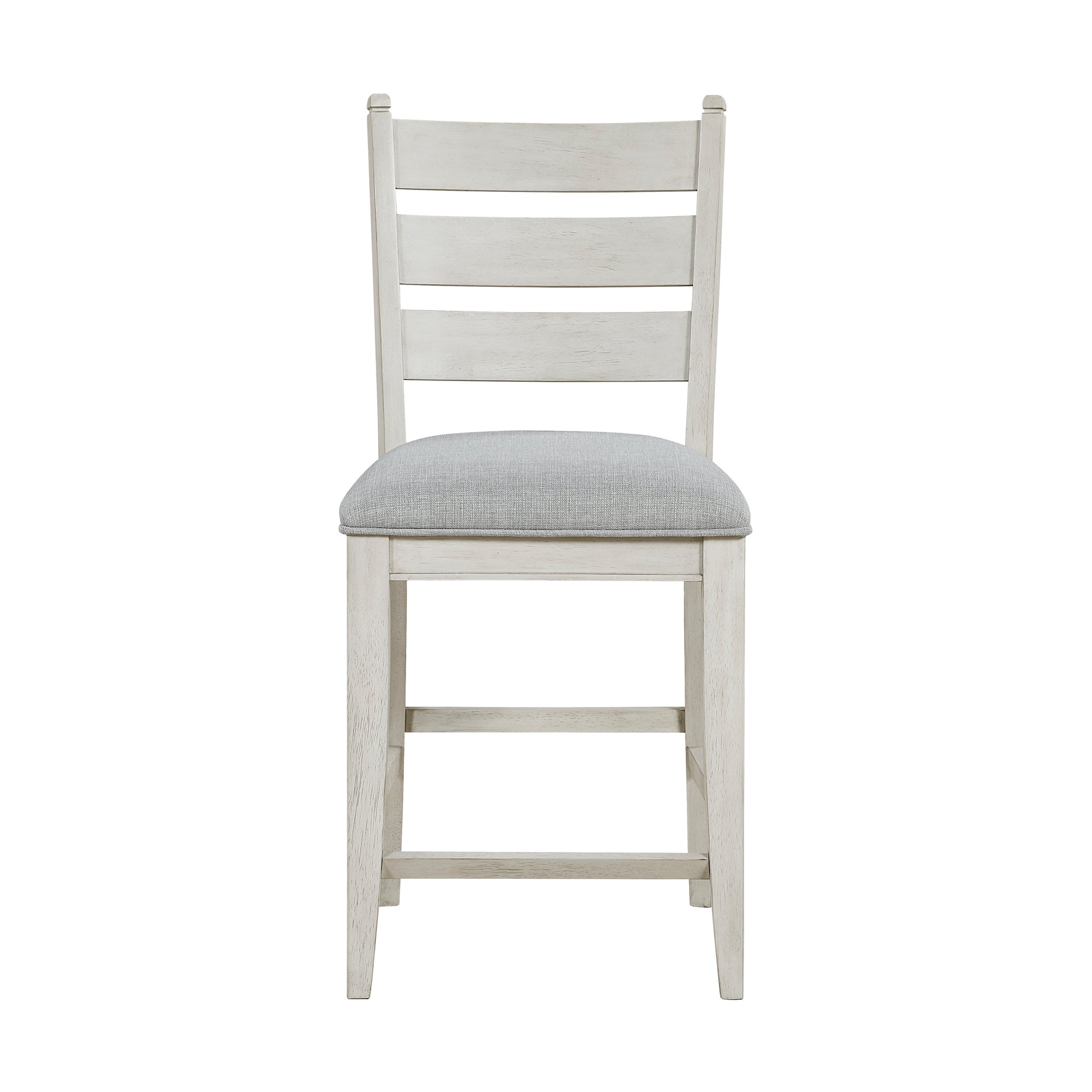 Elevate your dining space with this charming and functional counter-height collection, blending timeless elegance with a practical design. The extendable counter height table is crafted from durable oak veneer, wood, and engineered wood with a warm brown finish, and includes a removable leaf and two integrated storage drawers with ball-bearing glides for dining essentials. The coordinating counter height stool features a sturdy wood frame with a distressed white finish, a ladder-back design, and a comfortable textured fabric seat. Complete the set with a buffet and hutch, or a standalone buffet cabinet, both offering ample storage through drawers and cabinets with adjustable shelves, perfect for showcasing or organizing dinnerware and decor.